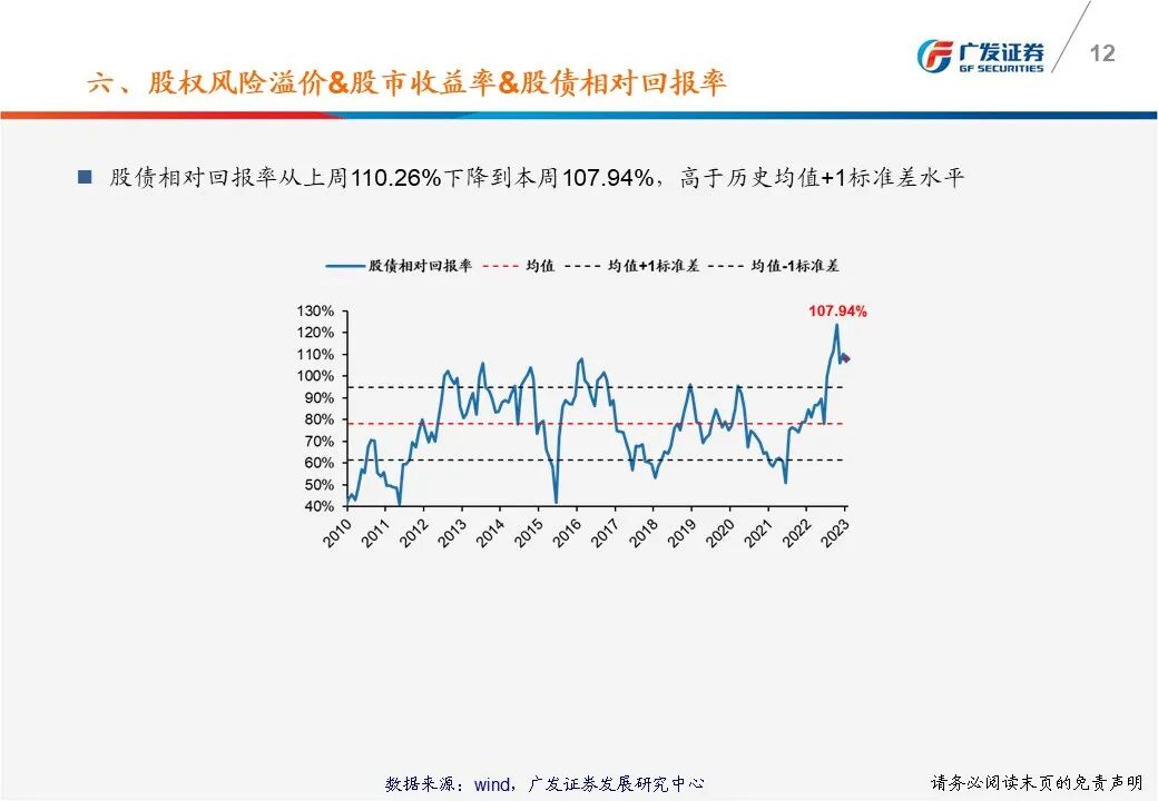 (6)股权风险溢价从上周0.93%下降到本周0.81%,股市收益率从上周3.76%下降到本周3.65%。