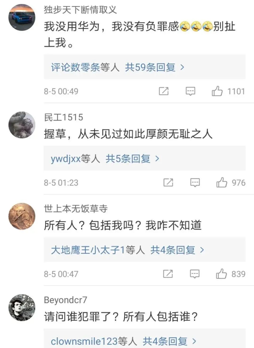 当然了,要说没用过她家的产品倒也不一定,谁知道呢,也可能在不知不觉中被她家的产品用了,比如各种被监控?但那也是“被”用啊,有能力的应该向其讨罪而非让其担罪啊。
