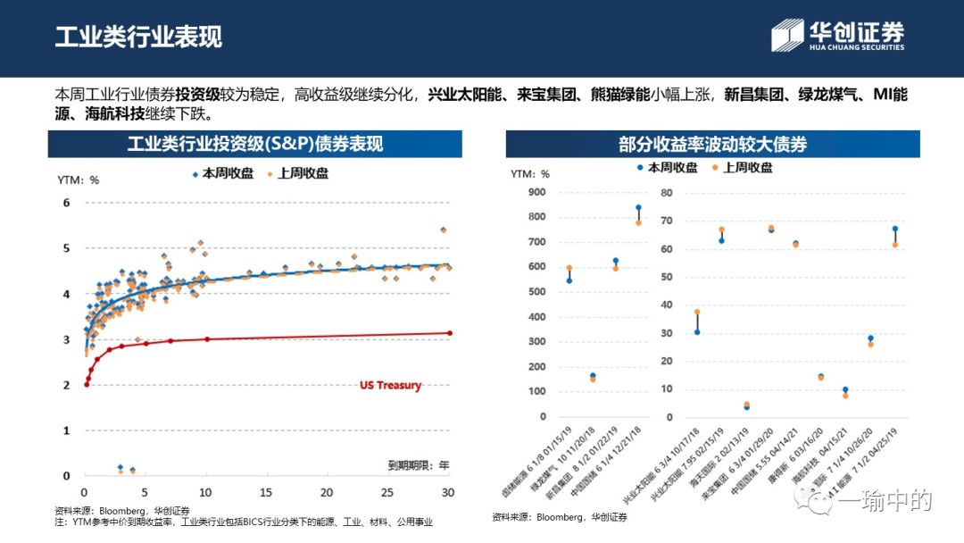 二级市场方面,本周市场表现乏力,继续小幅下行,投资级指数小幅下跌0.15%,高收益指数下跌0.27%。地产、城投本周小幅下行,金融服务业、工业类整体较为稳定。