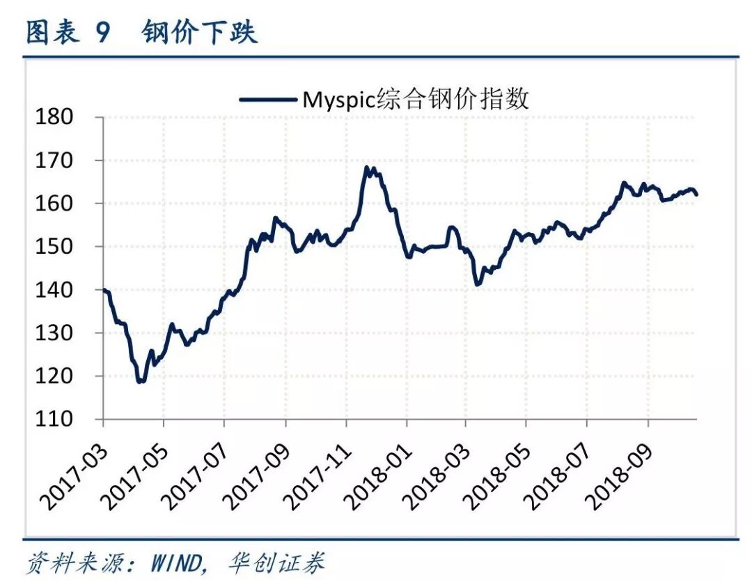 上周高炉开工率67.54%,环比下降1.01%,降幅进一步走阔;汽车半钢胎开工率上升至69.27%,环比上升0.35%,全钢胎开工率74.21%,环比下降0.07%。上周公布的中采PMI 50.2,为2016年7月来新低,较前值回落0.6个百分点。其中,PMI生产项较前值回落1个百分点至52%,工业生产下行压力仍大。财新制造业PMI虽较9月小幅回升0.1个百分点至50.1,但产出指数出现放缓。中采和财新制造业PMI二者均表明10月工业生产环比下行压力较大。钢价方面,11月北方地区进入为期四个月的冬季采暖季限产,今年的限产政策不再“一刀切”式对工业企业生产叫停,供给约束边际上有所弱化;需求端也进入季节性下行阶段。供需两弱、库存偏低,预计钢价将以震荡为主。