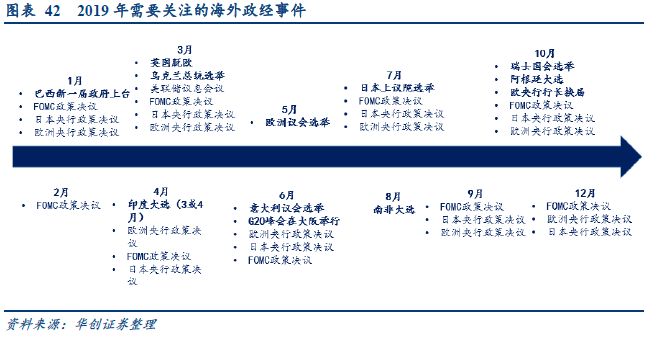 2019年全球经济增速还将受到贸易摩擦拖累:贸易摩擦通过贸易交易和信心渠道对全球经济带来负面影响,发达国家和新兴市场经济都有明显的下行风险。根据IMF测算,当贸易政策影响到全球信心时将使全球GDP增速损失0.4%。详细观点请见《【华创宏观】贸易摩擦对全球经济影响几何?》
