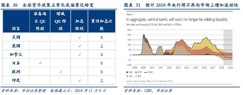 大类资产价格重估背景二:全球货币紧缩从“价”紧进入到“量价”双紧的局面。预计在2018年末全球主要央行将不会再向市场上提供增量流动性。