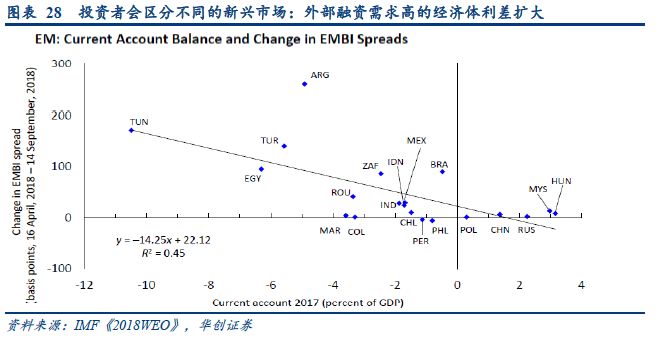 分化是2019年新兴市场的主题,具体表现为增长分化(经济基本面较好的新兴市场经济状况将继续逐步改善)、风险分化(风险集中在经济基本面脆弱、政治风险较高的国家)和资产定价分化(外部融资需求高的新兴经济体利差不断扩大)。新兴市场的风险来自于个别国家,风险以个别风险释放为主,整体基本面仍是修复状态,这也反映在投资者对新兴市场资产的定价上。总体来看,2019年新兴市场增长势头有所减弱、金融状况收紧,但风险由“点”及“面”,形成1997年和2014年传染式范围危机的概率也不高。详细观点请见《【华创宏观】土耳其货币暴跌对中国的“兜圈式”影响》