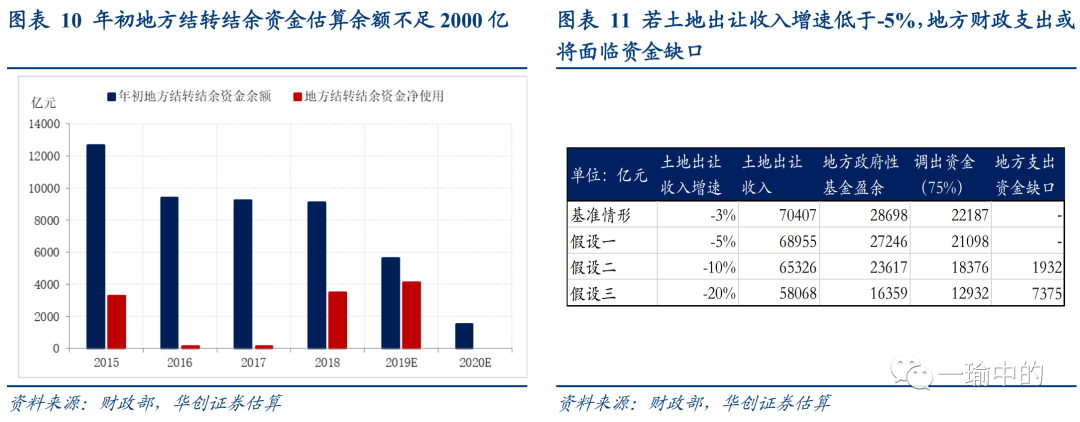 4.盘活地方存量资金,补充地方结转结余资金供使用。以上分析均基于地方不使用新增存量盘活资金的保守假设,而我们估算2015-2019年地方盘活存量资金总量约1.2万亿,2014年底省本级财政存量资金约为2.3万亿[2],不考虑新增沉淀资金,粗算目前地方财政存量资金至少尚存1.1万亿盘活空间。但在年初地方结转结余资金估算余额不足2000亿的背景下,考虑到地方财政困难局面可能并非一时,对今年盘活使用地方存量资金的期待不宜过高。