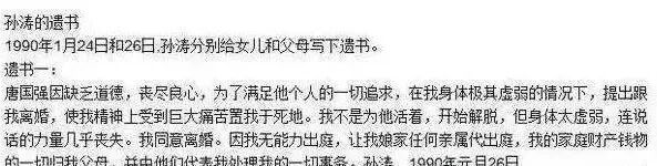 2004年,曾有媒体写了一篇《前妻自杀真相》的文章,采访了孙涛的母亲,孙母透漏了女儿自杀原因