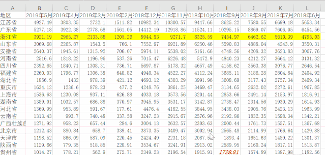比如以上动图,我们需要对各个地区首先按照2019年5月的数据降序排列,其次按照2019年4月的数据降序,以此类推重新排列整张表格,就要用到数据——排序的功能,依次添加条件,次序选择降序。最后的结果是重新排列的表先按照2019年5月的数据降序排列,若有地区5月的值相同的,则按照2019年4月的值降序,以此类推。