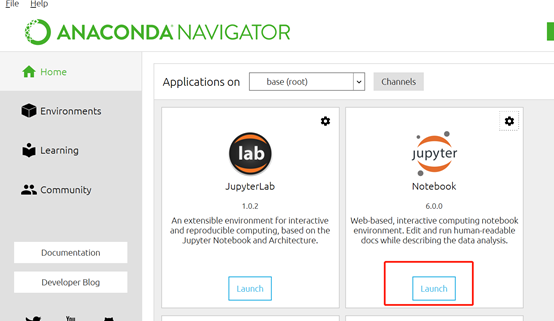 也可以从Anaconda Navigator中进入Jupyter,如下:![]()