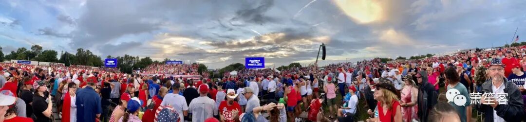参加川普佛州集会的群众在雨中场景(华裔爱国者的现场拍摄)