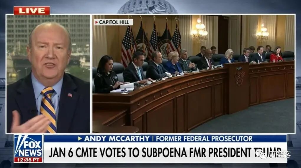 马克·蒂森:传讯川普是中期选举前绝望的政治操操作。Andy McCarthy、Byron York 和 Marc Thiessen在《故事》栏目对1月6日委员会出人意料地的传票投票做出反应独家报道:就在该委员会一致投票通过传唤川普之后,一位接近他的消息人士告诉《福克斯新闻数字频道》:川普很想在1月6日众议院特别委员会调查之前“作证”。该消息人士表示,如果川普遵照传票作证,他将 “谈论选举有多腐败,委员会有多腐败,南希·佩洛西为何没有像川普在三天前的2021年1月3日强烈建议的那样召集国民警卫队。”