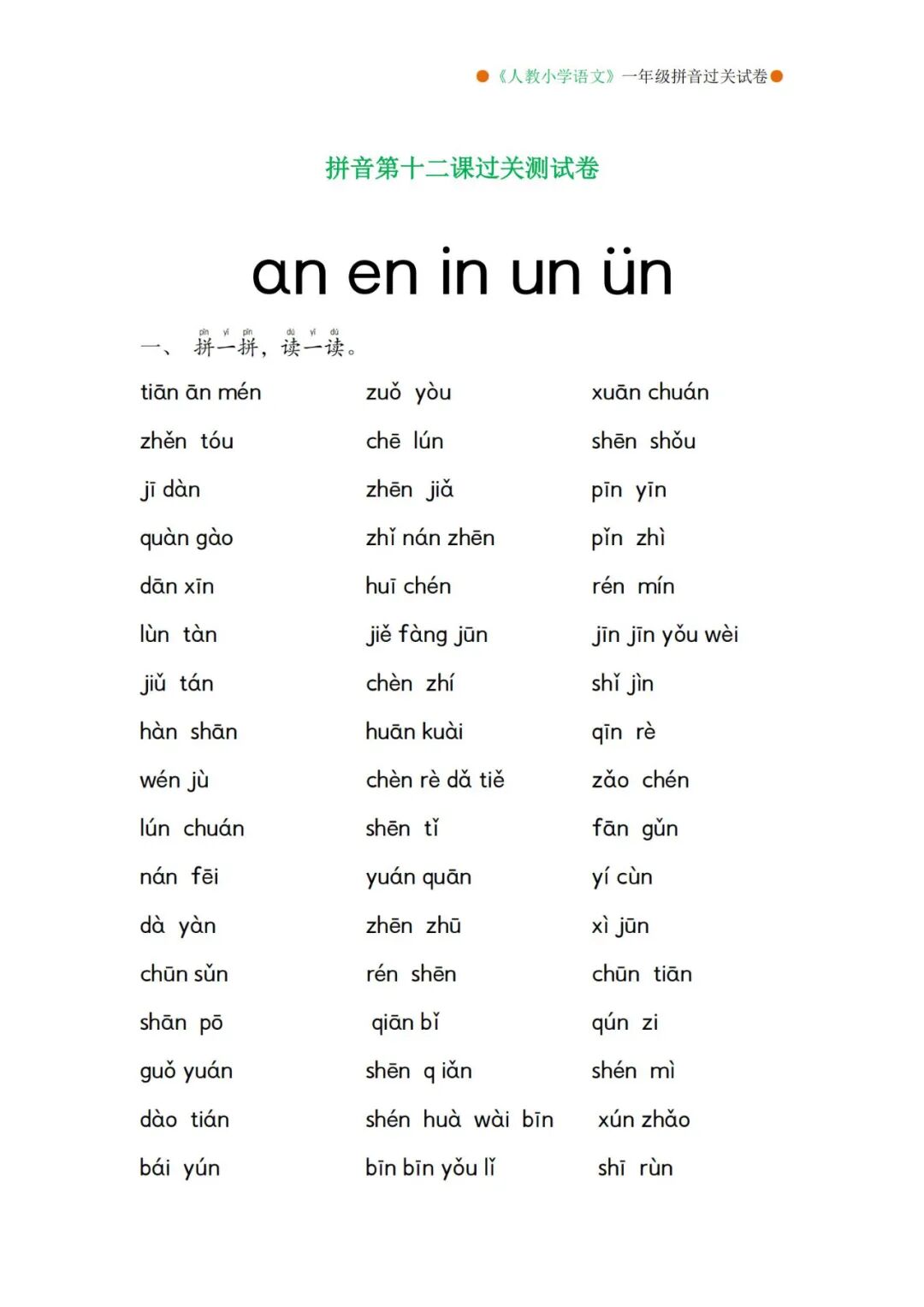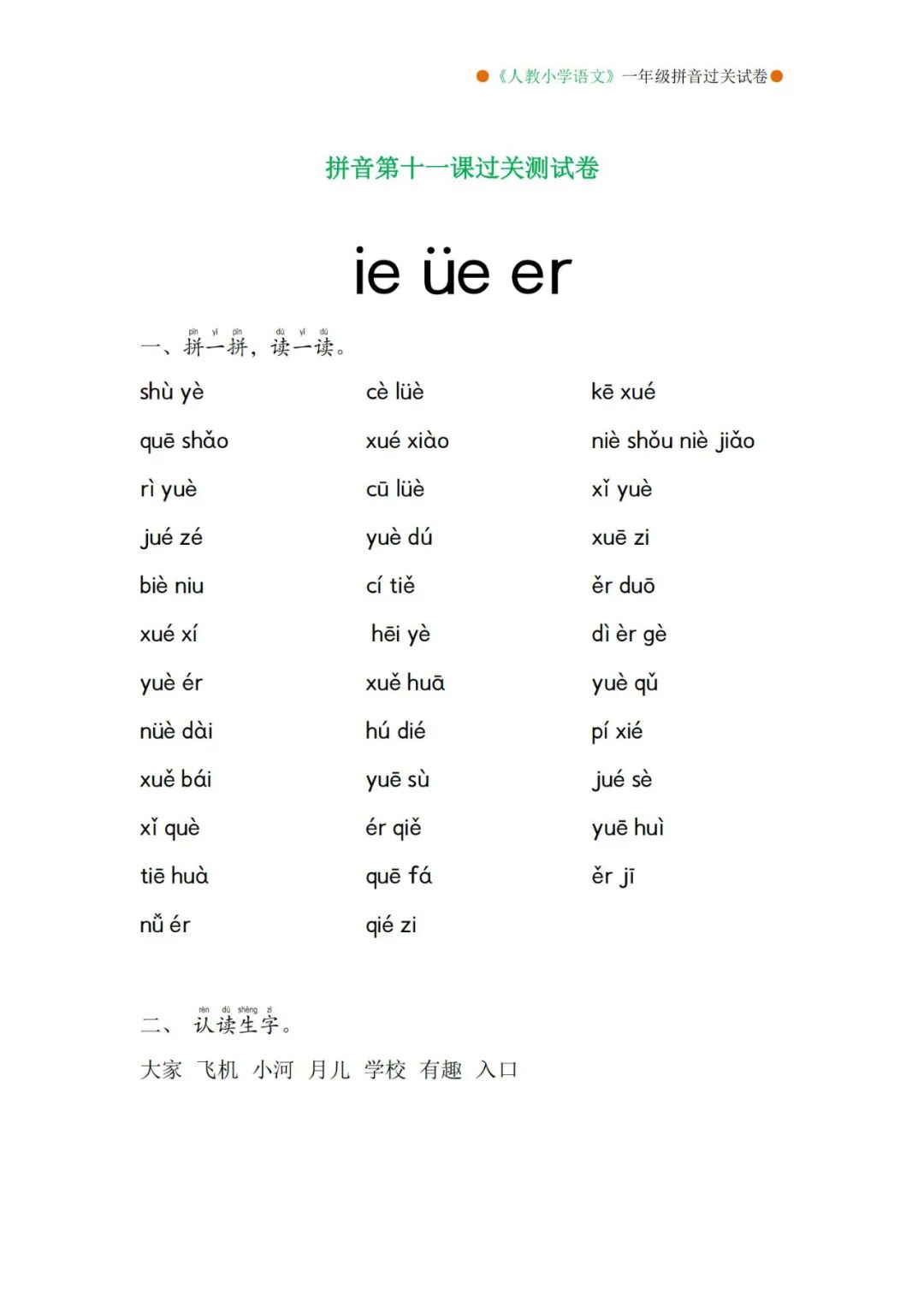 部编版一年级上册语文必背课文+闯关表