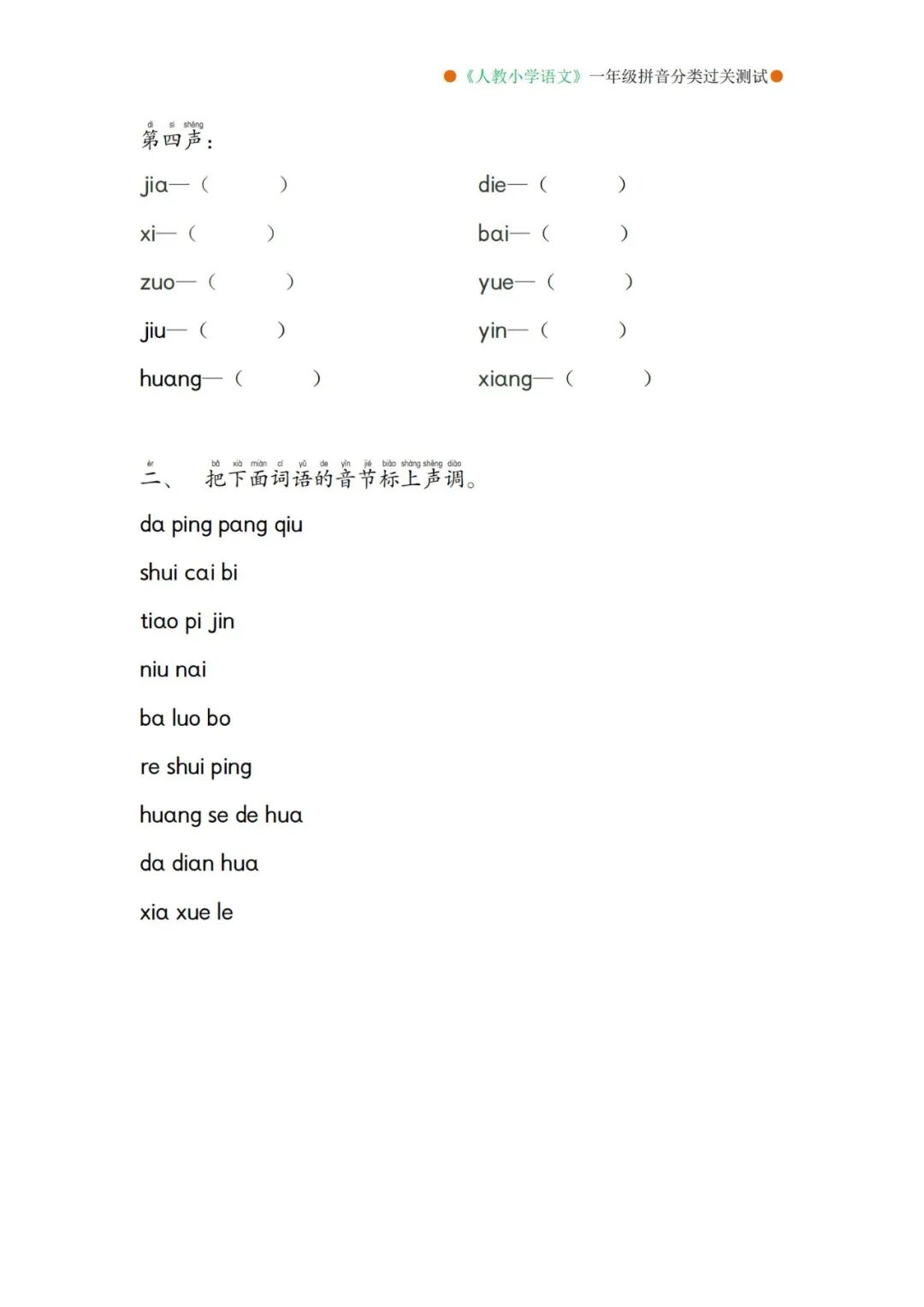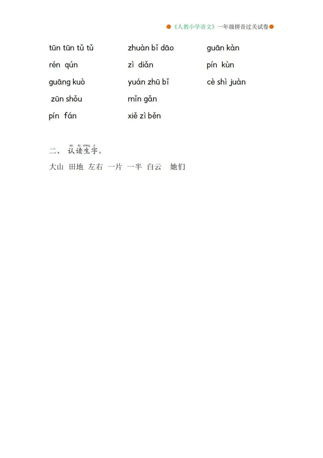 一年级语文上册看拼音写生字词语练习