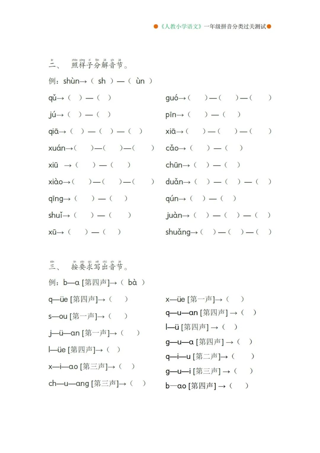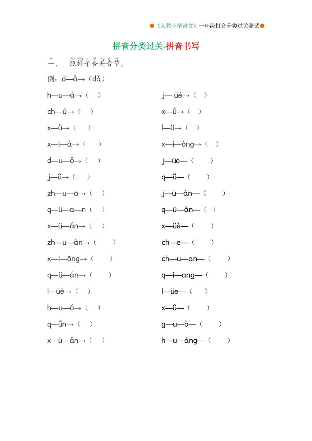 一年级上册语文看拼音写词语专项练习