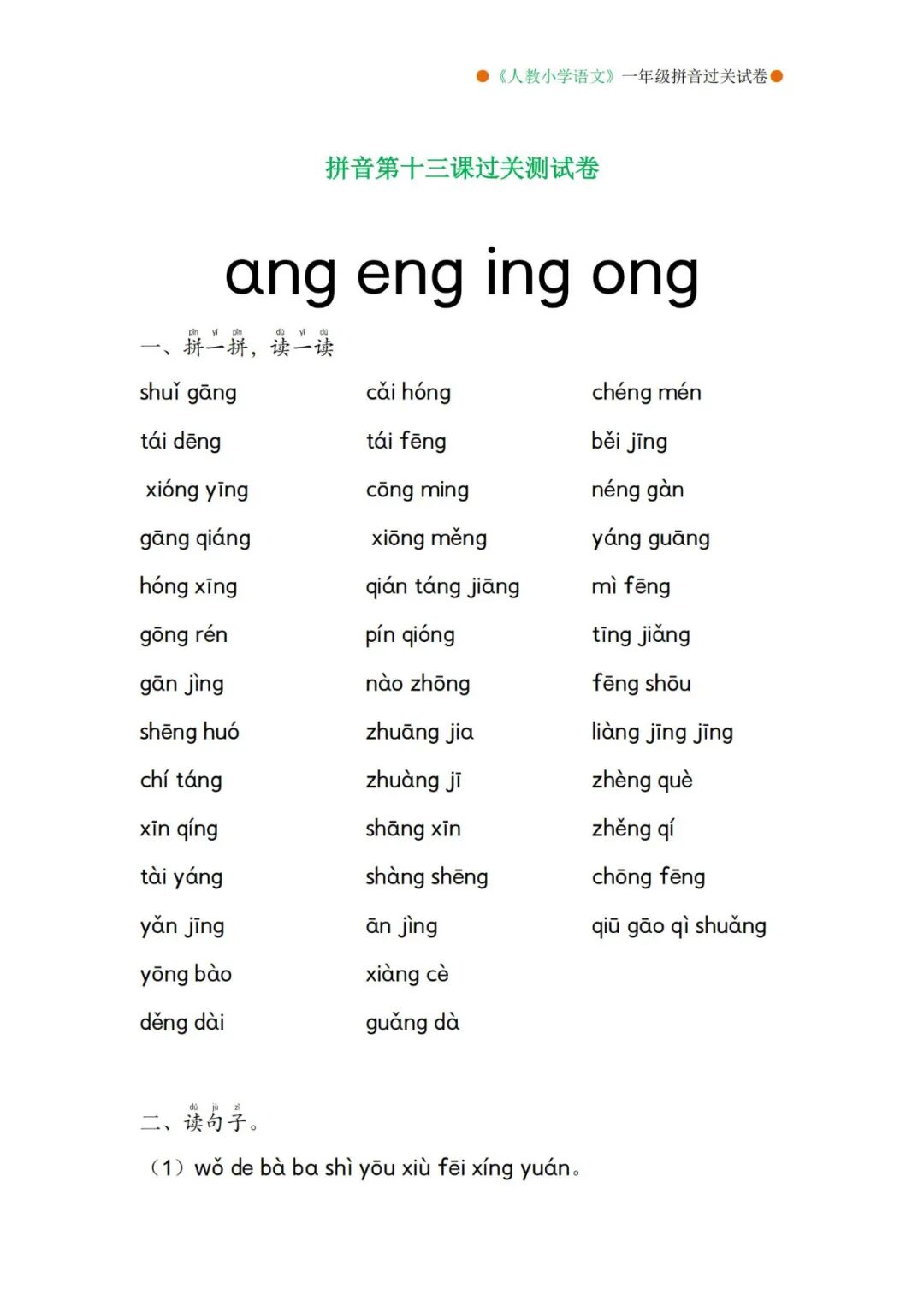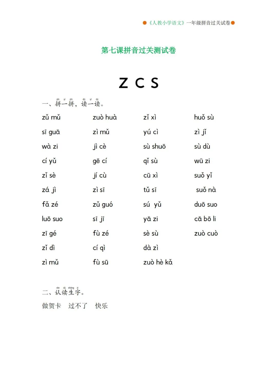 部编版一年级上册语文生字词听写MP3