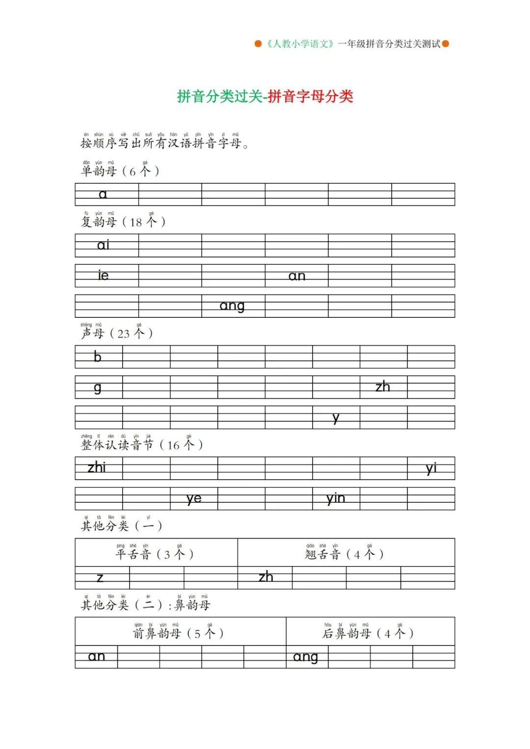 部编版一年级语文上册专项复习