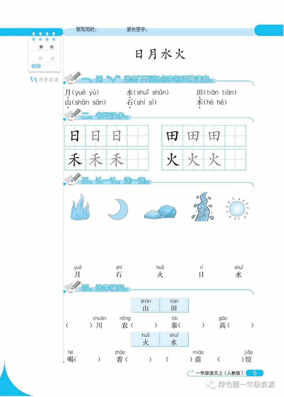 识字4《日月水火》