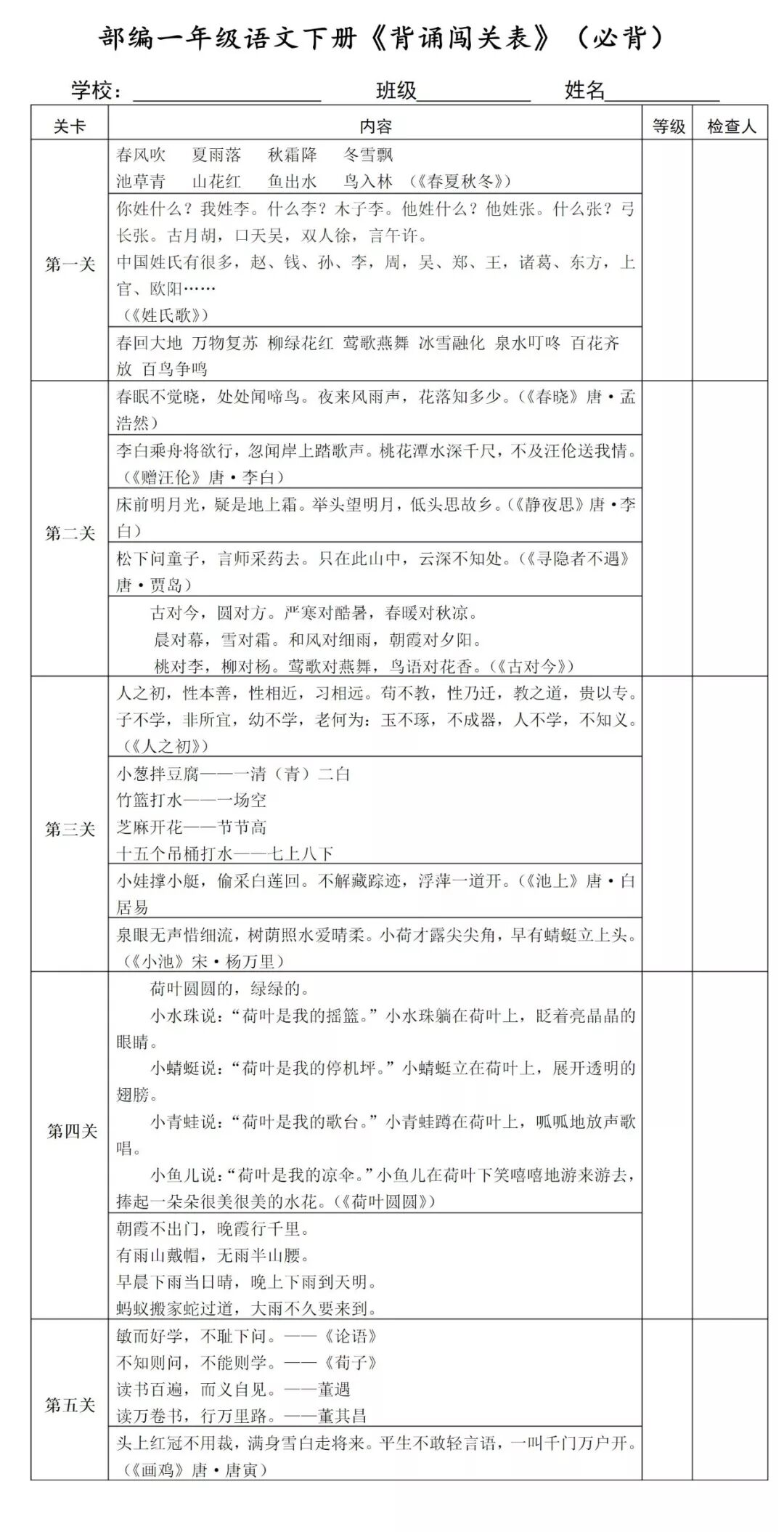 部编版一年级语文下册必背课文