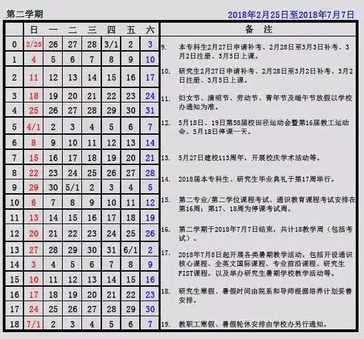 ▍2018春季学期校历