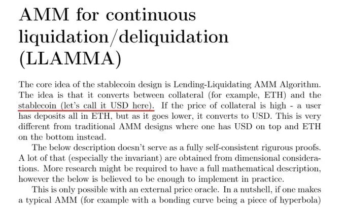 Curve刚刚发布了稳定币文档,其中最大的创新点是“借贷-清算AMM算法(LLAMMA)”