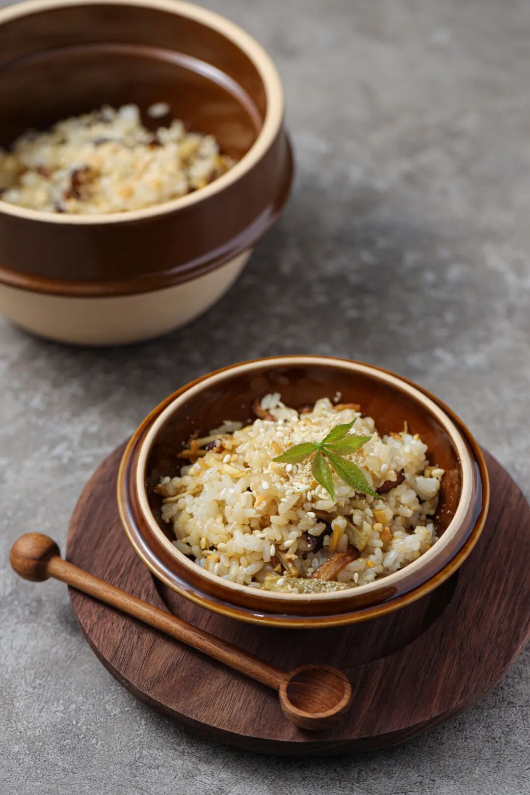 姜母汤,用老姜和黑芝麻一起做底,再配上经过处理的猴头菇,养生也养胃。