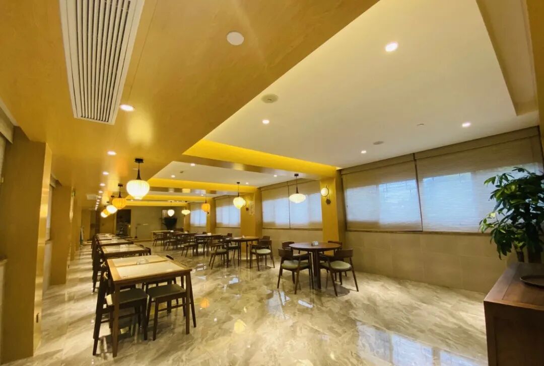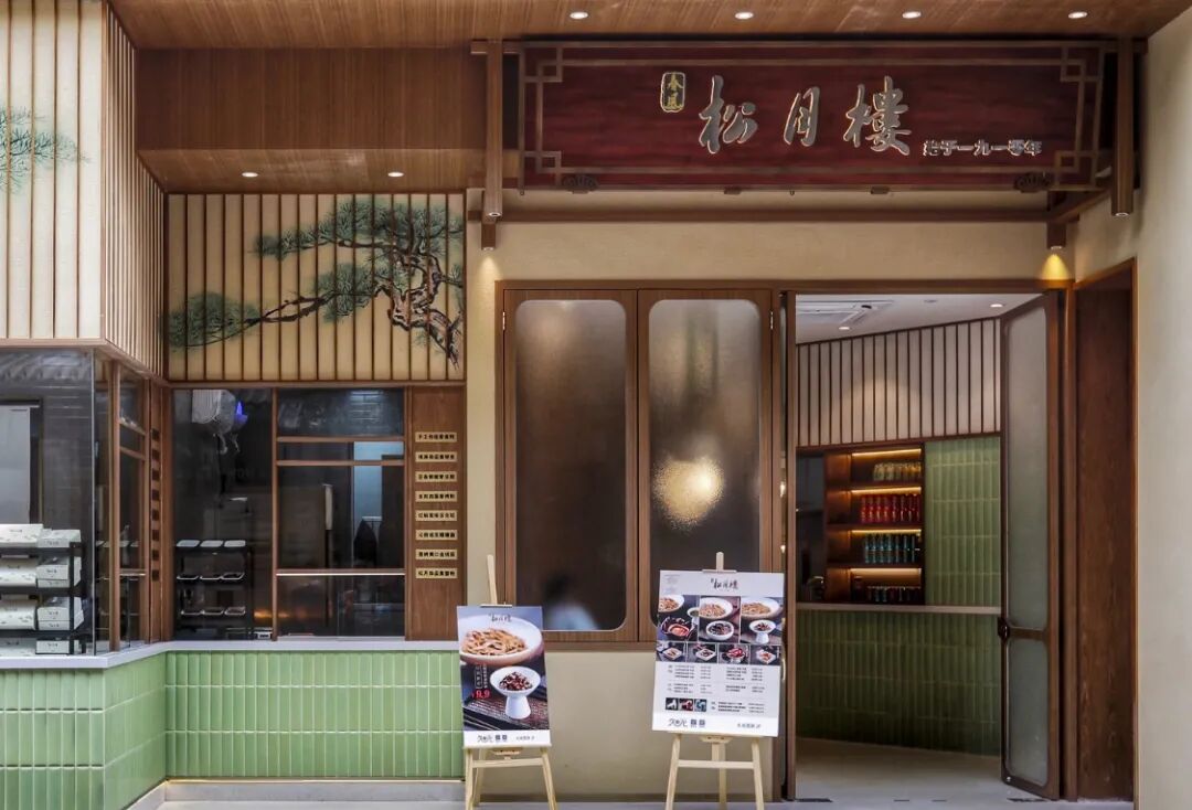 装修的风格算是中国风,但与老店不同的是,门面用了绿色和原木色搭配,舒服又自然。