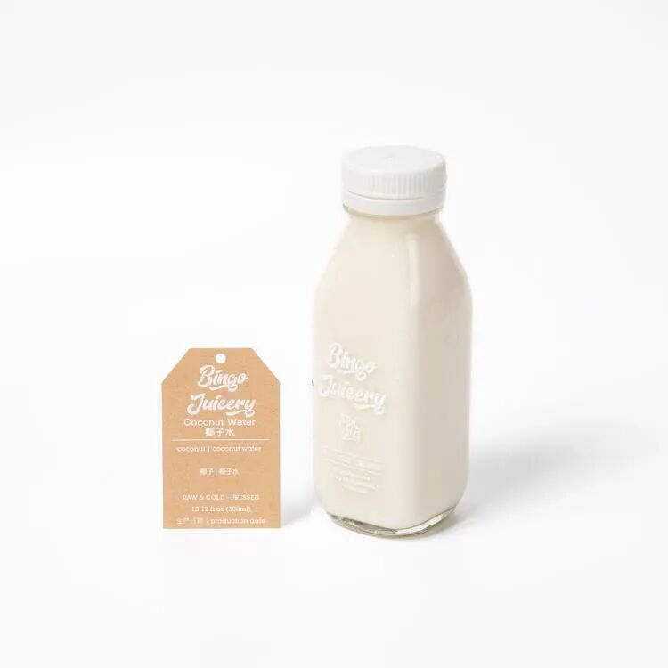 平时我们买的椰子水都是泰国椰青制成的居多。而他们家的椰子水则是椰子水取出后,再和椰肉一起制成的,所以呈现乳白色。