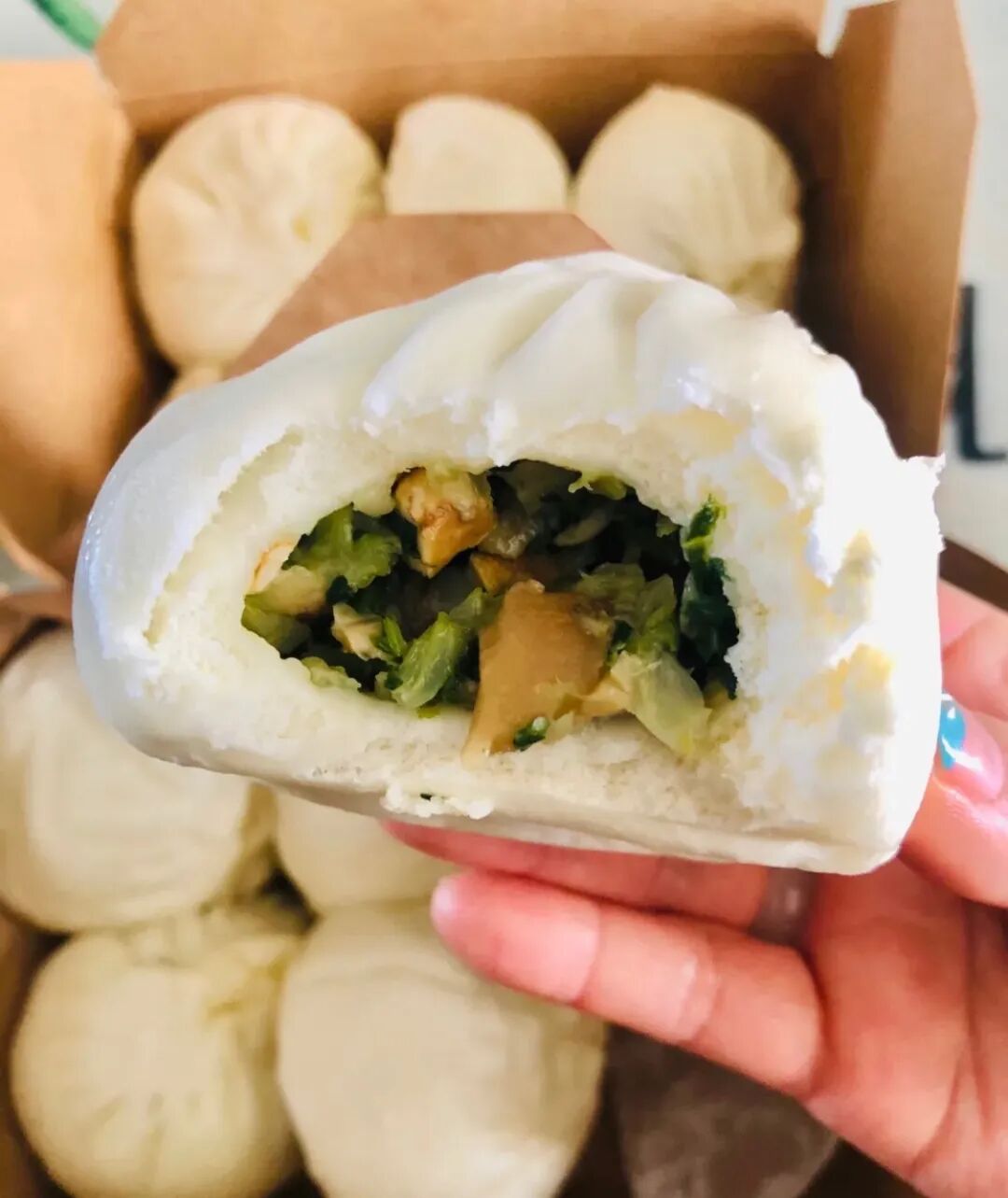 他们家的特点就是真材实料,包大馅足,一口见馅。一个100克的包子里,有50克的馅料,只要小小一口就可以吃到里面满满的蔬菜。