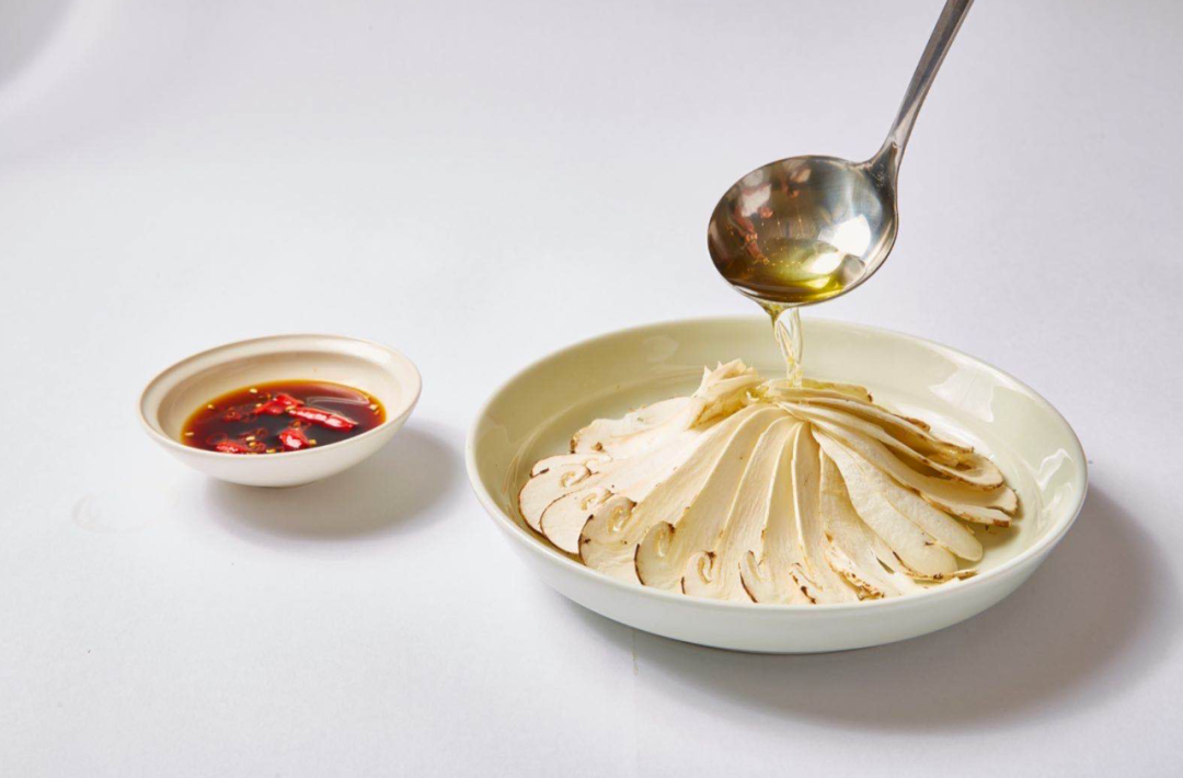 炝烧松茸,平时吃松茸总觉得会有腥味,而他们改用炝烧的做法,没有了腥味保留了松茸的鲜嫩。