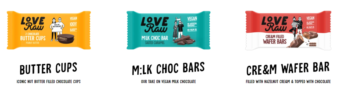 Love Raw创立于2013年,是一家英国植物基巧克力品牌。创始人致力于提供和牛奶巧克力味道一样的植物巧克力。