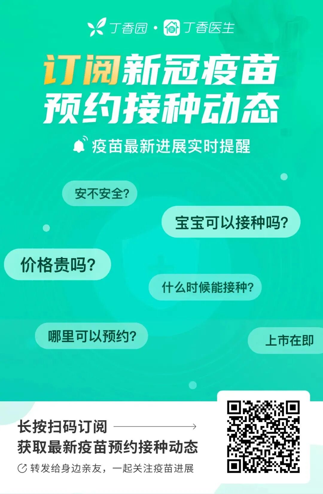 丁香医生推出了疫苗实时查询的小程序,长按扫描二维码,可以进入小程序了解。