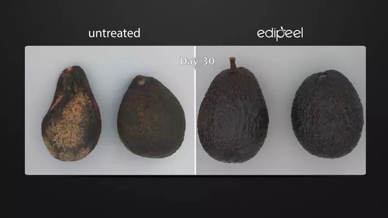美国食品保鲜公司Apeel则发明了新的食物保鲜法:在食物的表面覆盖一层类似“果皮”的可食用涂层,帮助水果留住水分和隔绝氧化。