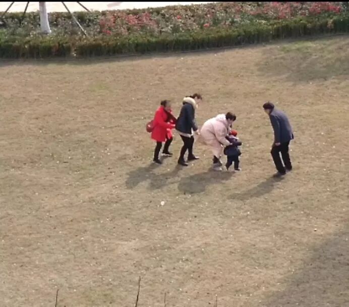 1月28日,家人在小区楼下玩老鹰捉小鸡,其时,老鹰真的在扑向武汉。(作者供图)
