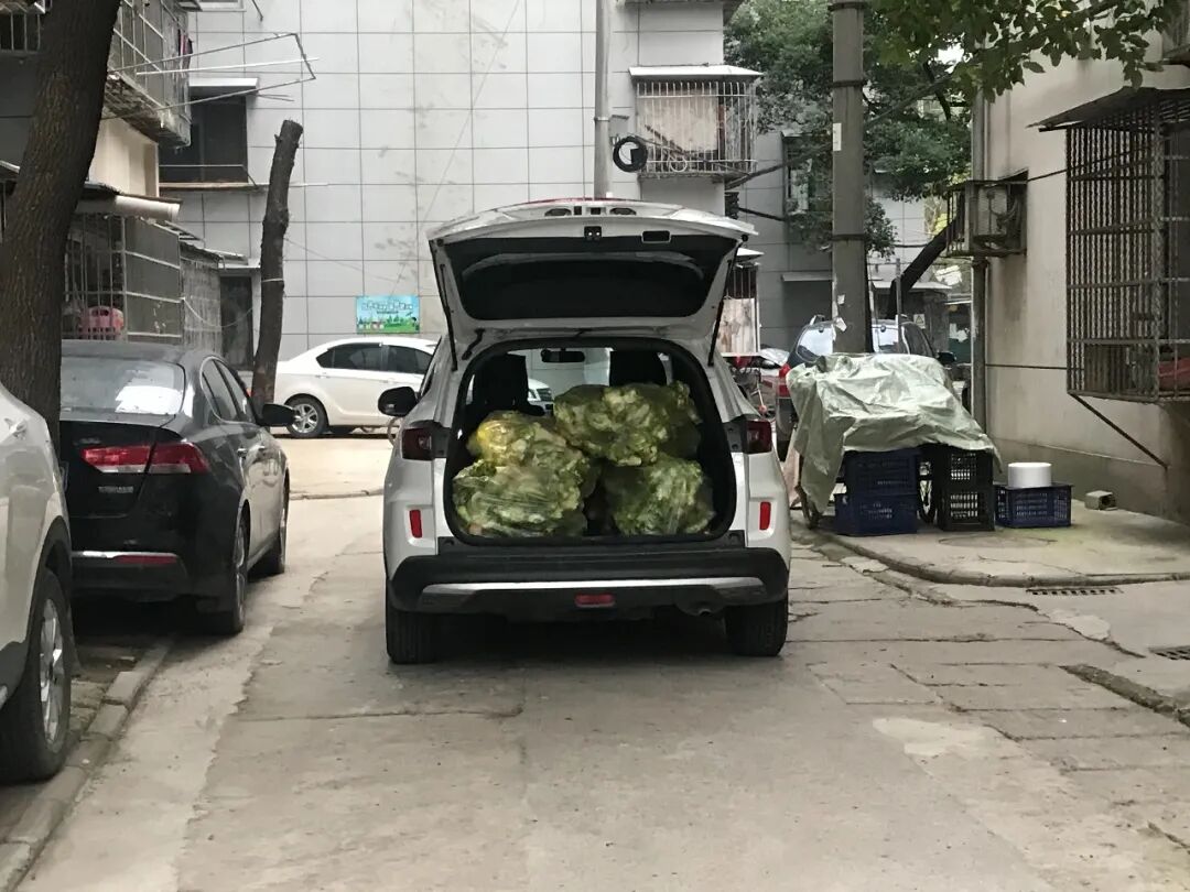 后备箱里是四川捐来的蔬菜,小区准备发给居民(作者供图)