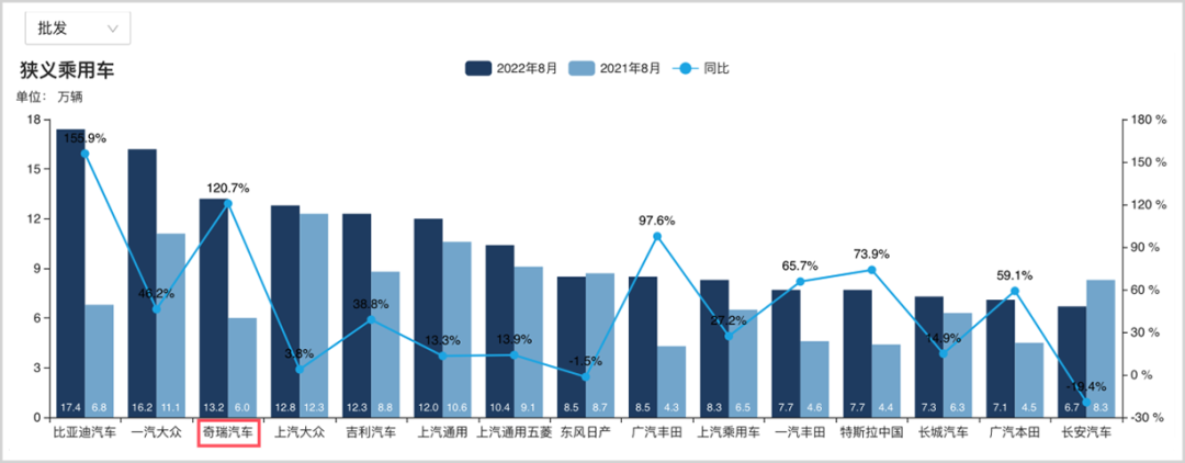 今年八月,人们惊奇的发现,沉寂多年的奇瑞一举反超上汽大众和吉利,冲进批发销量前三,零售销量也重返前十。