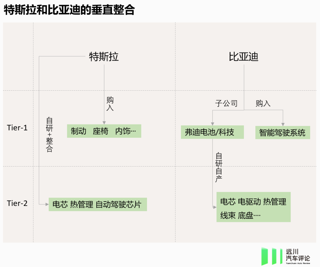 垂直整合:特斯拉绕过Tier-1,比亚迪自己就是Tier-1