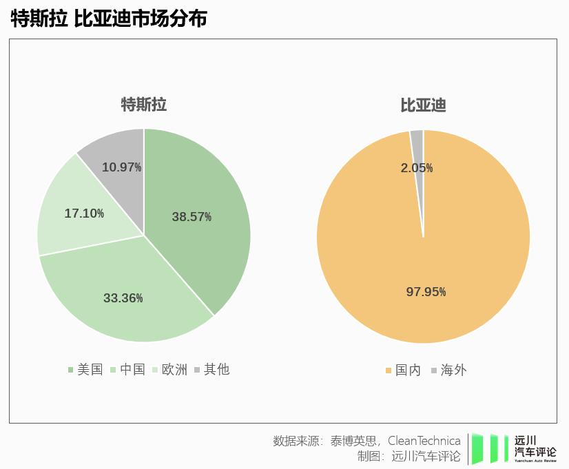 作为全球TOP2市场的TOP2玩家,特斯拉和比亚迪在本国都是碾压型的存在,而这两家公司的对垒也将成为全球新能源市场的最大看点。