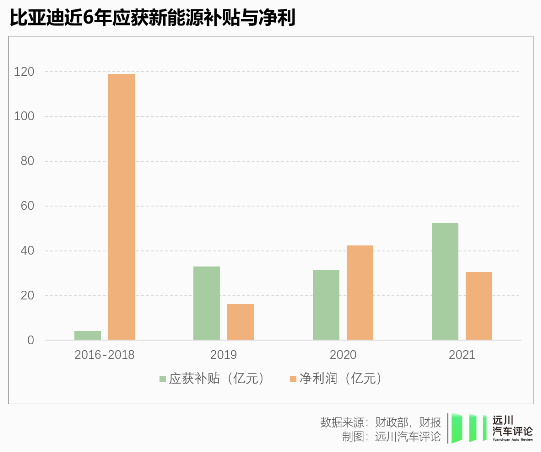 同样,比亚迪在新能源补贴和积分交易上也收获颇丰,仅2020年积分收入就达到22亿元。过去5年,比亚迪从政府获取的新能源补贴则更加惊人,累计超过120亿元,这占到它过去十年净利润的一半。