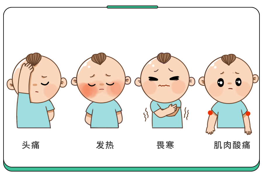 除此之外,孩子还可能表现为头痛、发热、畏寒和肌肉酸痛等。