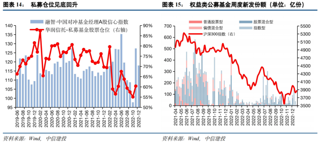 公募新发仍较为低迷,但股票型ETF表现相对亮眼。12月份新成立2只创业板50相关ETF,募集份额达133.67亿份,表现相对亮眼,按基金开放赎回日(20230103)大致估算,覆盖创业板50的2只ETF已于近期建仓,带来了一定的增量资金。但整体来看,目前公募新发仍较为低迷,若市场赚钱效应好转,公募新发有望回暖。