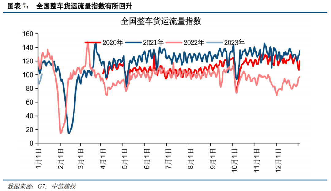 整车货运流量经历12月低位后,近期物流指数开始回升。近期整车货运流量指数呈现上升的态势,物流水平不断恢复。