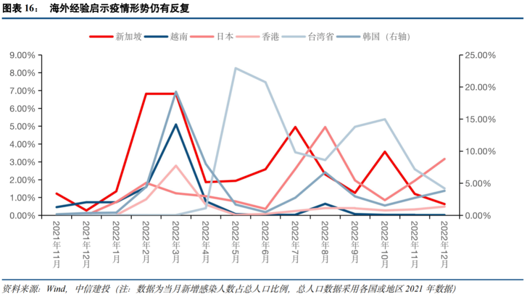 疫情和地产是国内两大核心矛盾,外部因素的关键依旧是美联储。首先,国内疫情的陆续达峰、线下人流与消费场景的恢复,意味着疫后复苏的真正开启,市场的交易逻辑已然发生了微妙的变化。前期市场关于疫后恢复路径的各种预期层面的博弈定价(社服、消费、机场航运等)已经趋于结束,验证期的到来会驱使投资者更多关注真实的恢复趋势。海外经验带来的启示是疫情的反复性不容忽视,尽管国内本轮“快速过峰”情形下感染率的相对较高可能致使后续疫情反扑的程度弱于海外,但仍然需要关注一些潜在因素的出现对于恢复路径形成超预期的冲击。