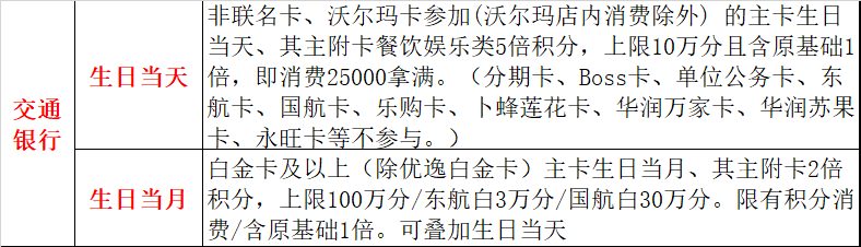 还有就是交行生日多倍了: