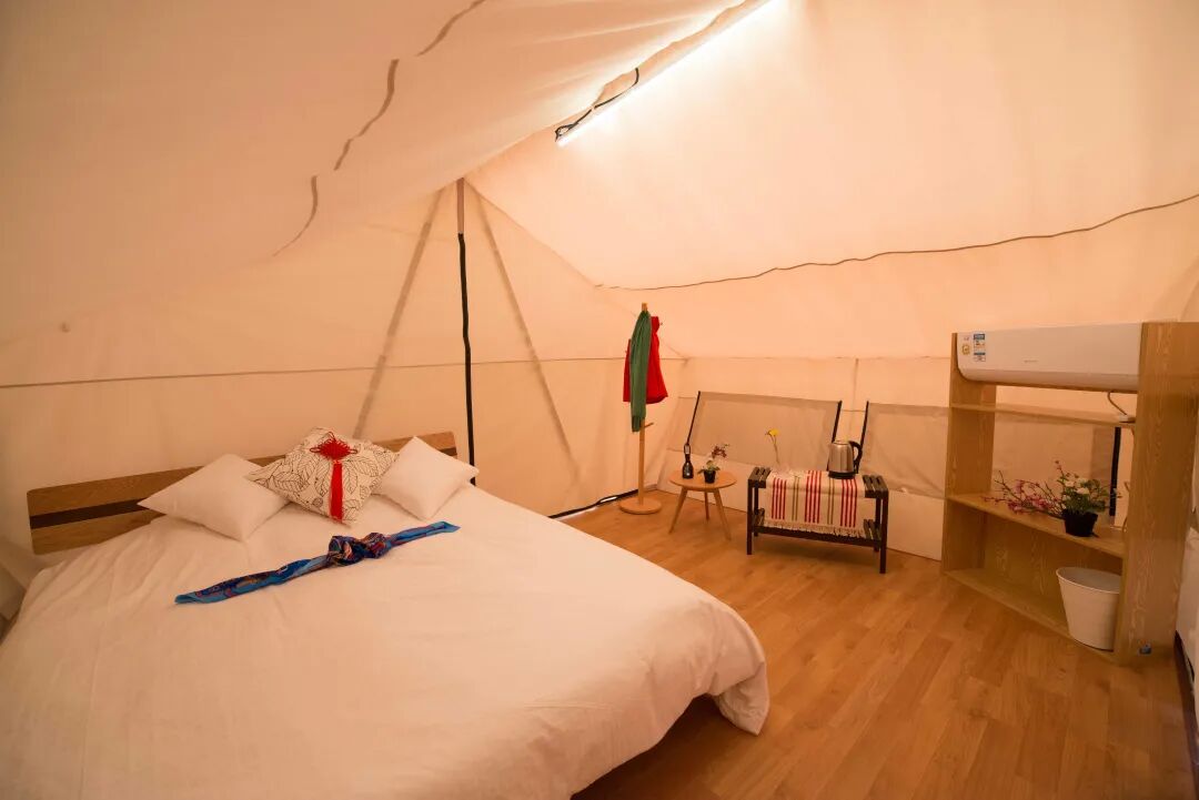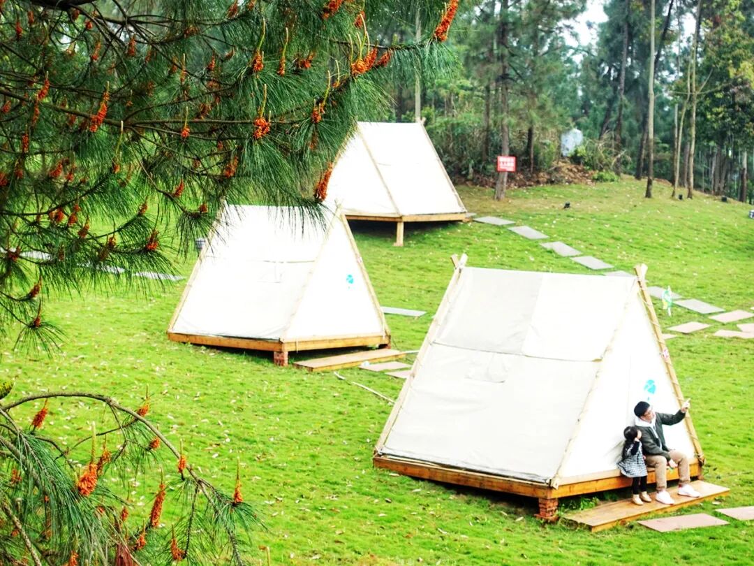 篷客·水磨古镇露营地在眉山市仁寿县的运动公园,里面有山有水,还有超多娱乐设施离成都园区内超大,占地面积1300亩,80%都是绿植,而且还有24项游乐项目,可以说是一个大型的游乐园,耍上一天一夜都可以,带小朋友的首选这家,这次可选三角帐篷或者独栋小木屋三个房型,都是小朋友喜欢的!