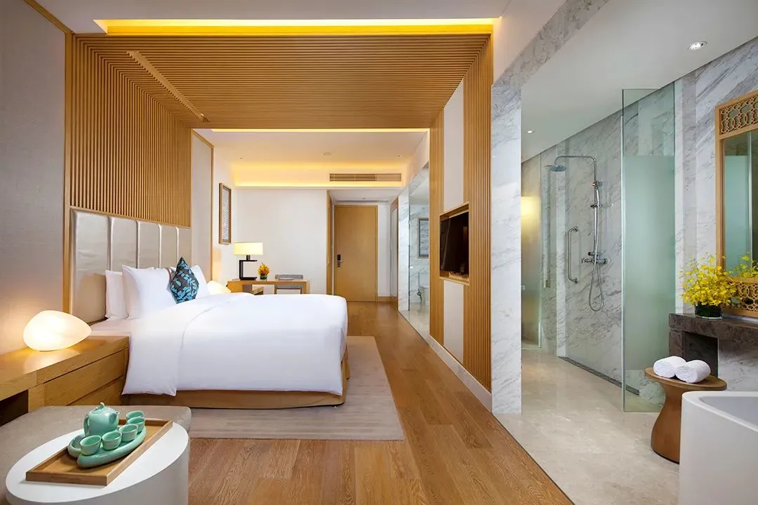 峨眉山地区目前唯一一家国际品牌全服务酒店,绝对是法式浪漫基因碰撞川式安逸风情,山景房或湖景房一晚包含双早+双人无限次室内外泡池+免费接送峨眉山-高铁站,这太适合去周末放松一下了!而且这家可兑换日期到年底哦!