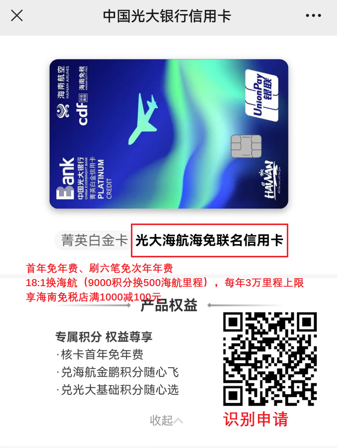 目前还有光大海航卡,当然就是冲着12倍积分来的。抓紧: