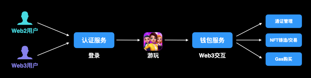 - 链上交互时,通过内置的钱包服务为用户解决钱包创建、通证管理、 NFT 铸造和交易等问题;