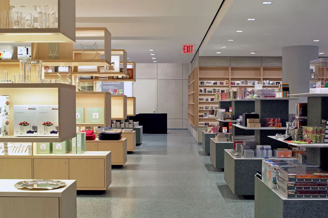 仅一街之隔,便是博物馆零售部门运营的 MoMA 设计商店。博物馆于 1929 年在纽约曼哈顿中城的 53 号大街开业,不到四个月,大堂就出现了放在前台的零售专柜,供人们购买展览目录或观看藏品照片。