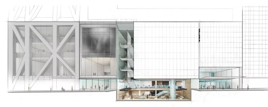 新 MoMA 博物馆的一楼不再需要购票入内,并增设临街的橱窗——一切都是为了让你更容易走进去。原本位于一楼的 MoMA 设计商店仍然与大堂联通,但却“下沉”了一层,形成了一个垂直的开阔空间。它将销售更多品类的商品,成为 MoMA 设计商店的大型旗舰店。