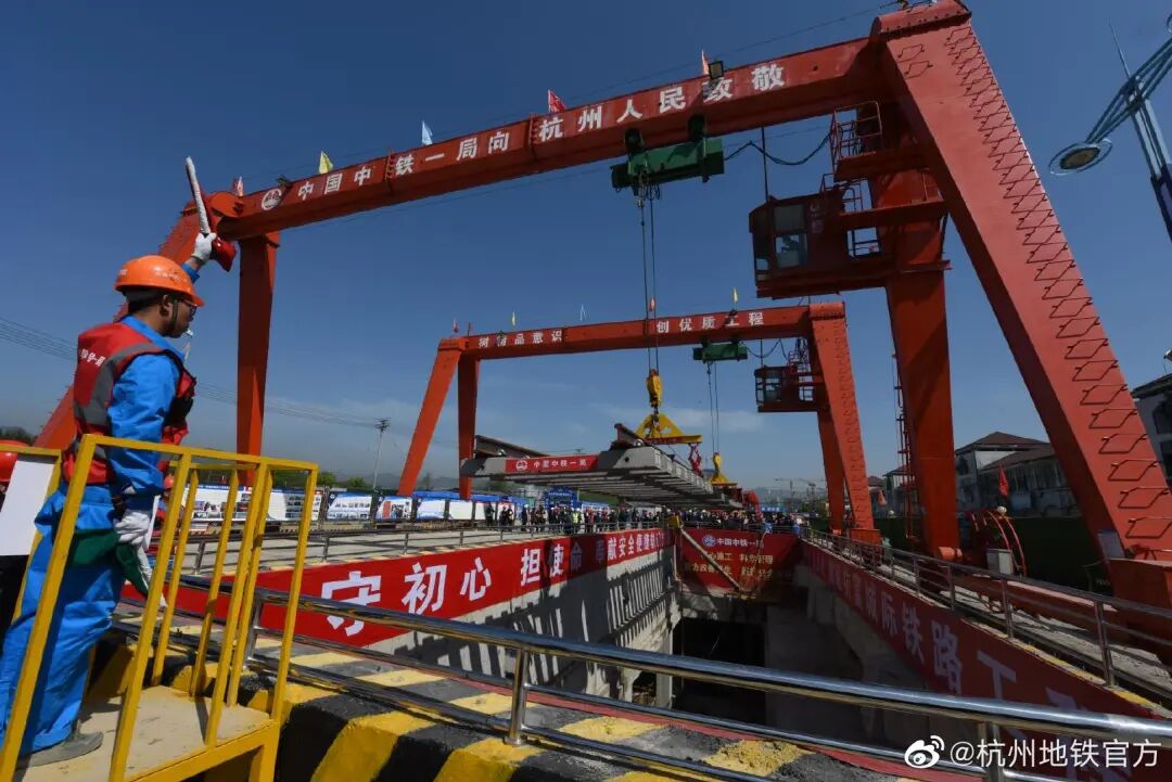 4月8日上午,在杭富城际铁路高教路站铺轨基地施工现场,随着作业工人将一组25米轨排吊运至轨行区,杭州至富阳城际铁路轨道工程正式开始进行轨道铺设。