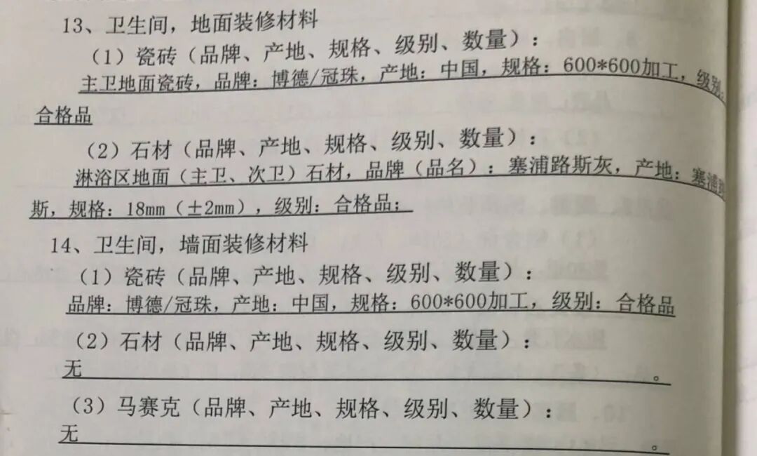 (合同中的装修材料的品牌和规格,图片来源于购房者提供)