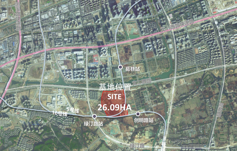 项目位于余杭区闲林街道,未来科技城核心区域,文二西路南侧,创景路西侧,处于未来科技文化中心项目的西北角,用地性质为体育设施用地(A4),用地面积接近400亩。